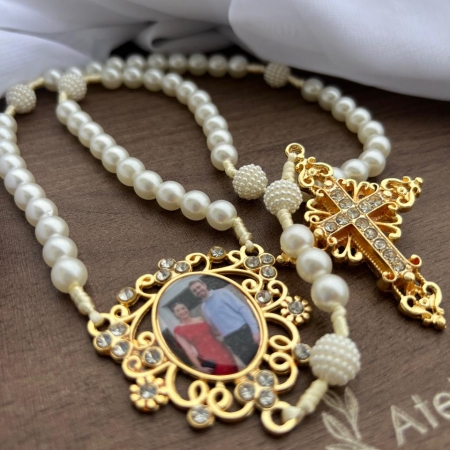 • Terço com foto e strass arabesco